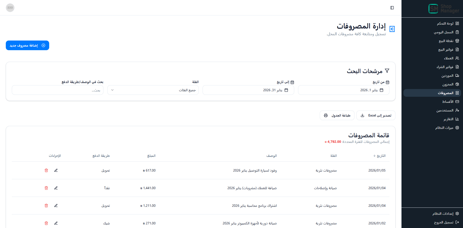 تسجيل ومتابعة جميع مصروفات المتجر مع تصنيفات مخصصة.