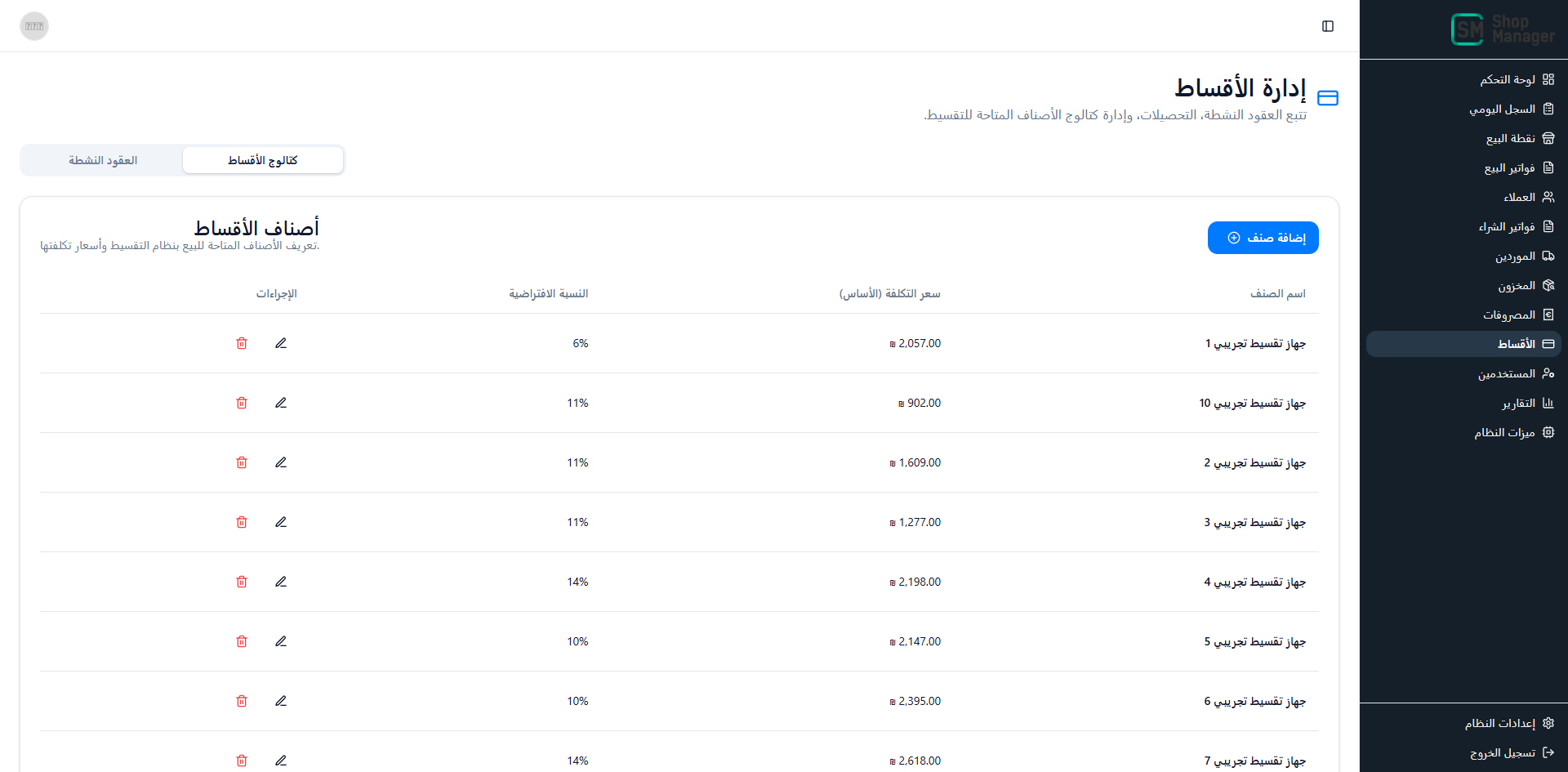 أضف المنتجات، اختر العميل، وحدد طريقة الدفع (نقدي أو أقساط)
