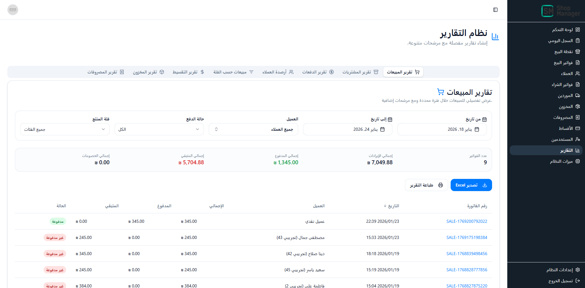 تقارير شاملة عن المبيعات، المشتريات، الأرباح، والمخزون بنقرة واحدة.