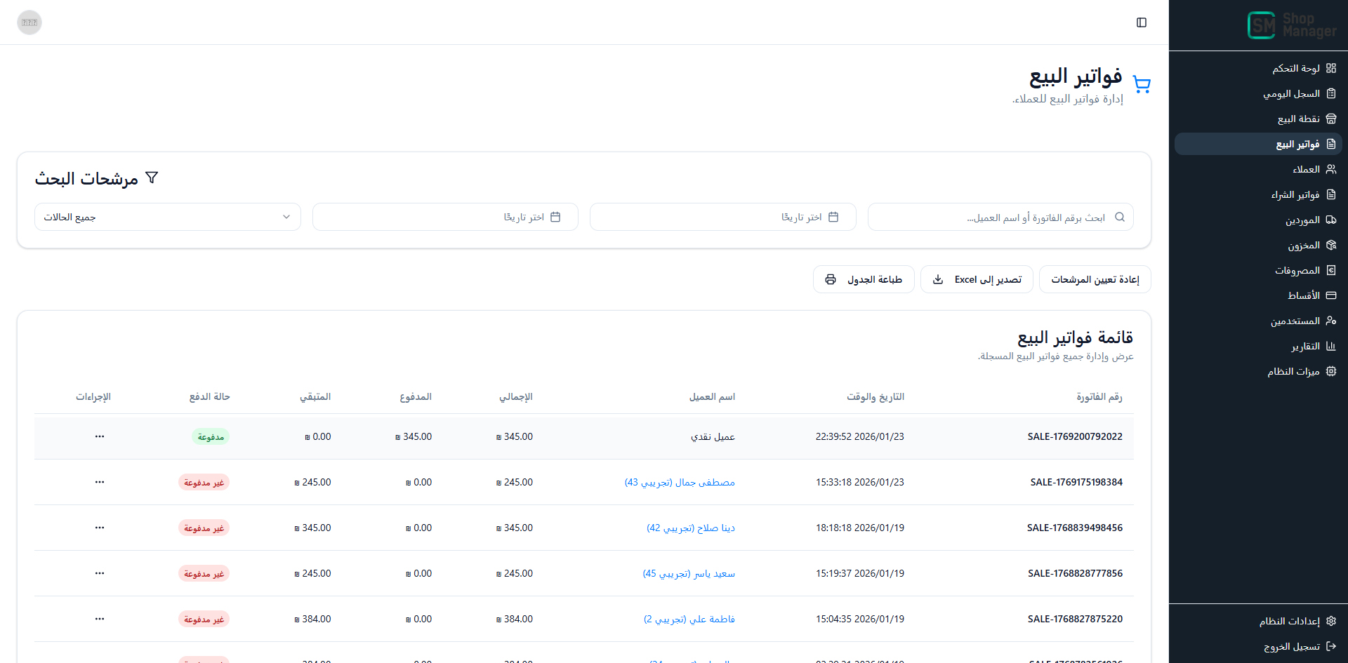 تعديل ومتابعة فواتير البيع مع سجل كامل للتغييرات.